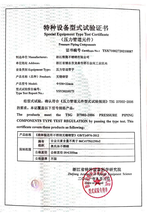 浙江銀隆不銹鋼有限公司創始于2006年,是一家專業生產不銹鋼無縫管的企業。公司位于浙江麗水市,企業注冊總資金貳億壹仟柒佰肆拾玖萬元,擁有4家工廠,占地總面積11萬平方米,職工530人,年產不銹鋼無縫管5萬噸。
